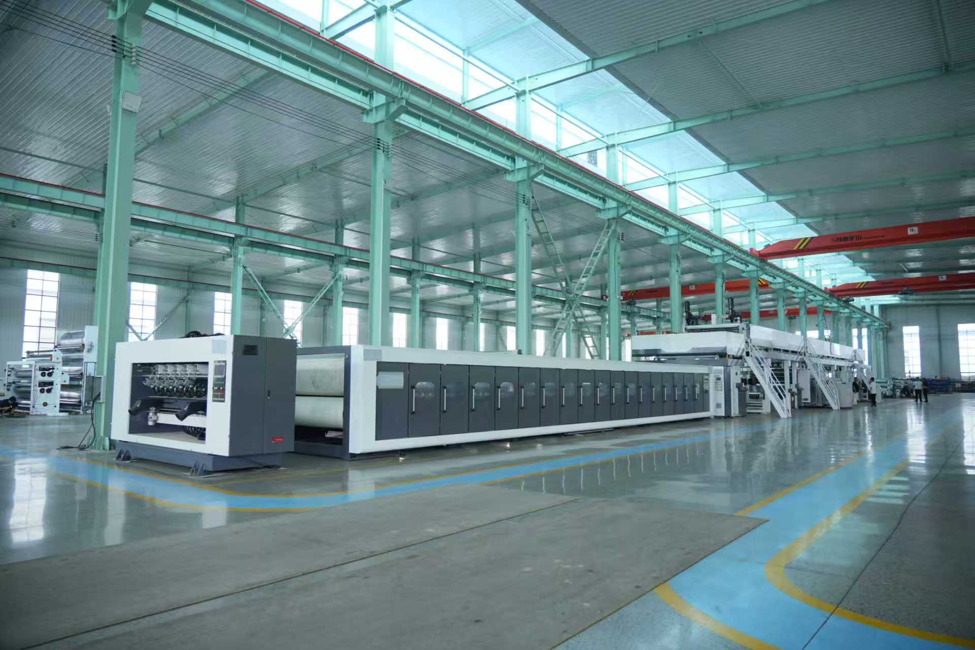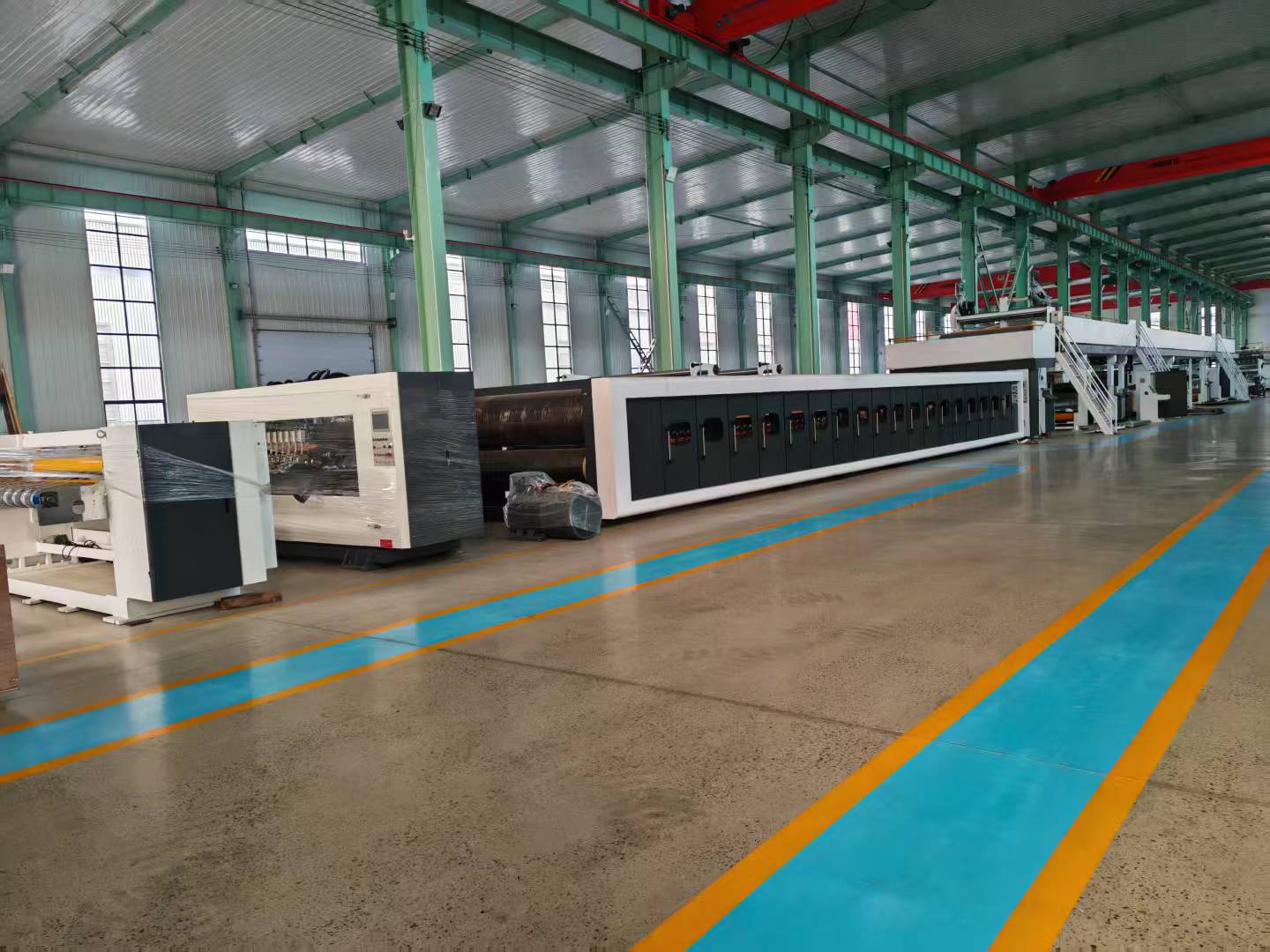 • Precision Gluing & Bonding: The glue machine features independent servo-motor controls for each layer, ensuring the glue film remains uniform regardless of speed changes. The double-facer heating plates are PLC-controlled to apply precise pressure, preserving the structural integrity of the flutes for 3, 5, and 7-ply configurations.
