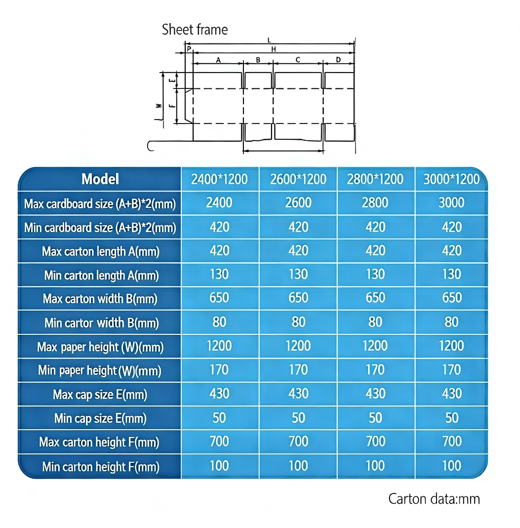 Integrated Stitching Section: Adjustable stitching distances (30mm-120mm) to meet diverse structural requirements for heavy-duty cartons.